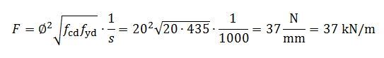 Kan jag då använda VRd,s =ASW*fywd(cot θ + cot α)sin α, som ger för 16 mm armering med avstånd 250 mm = 806 mm2 x 435 x (1.5+1) x 0,7 =613 kN (med cot θ =1.5 och 45 grader och ett lager). Eller ska jag använda VRd,s =ASW x fywd x sin α = 806 x 435 = 350 kN (samma förutsättningar som ovan)?